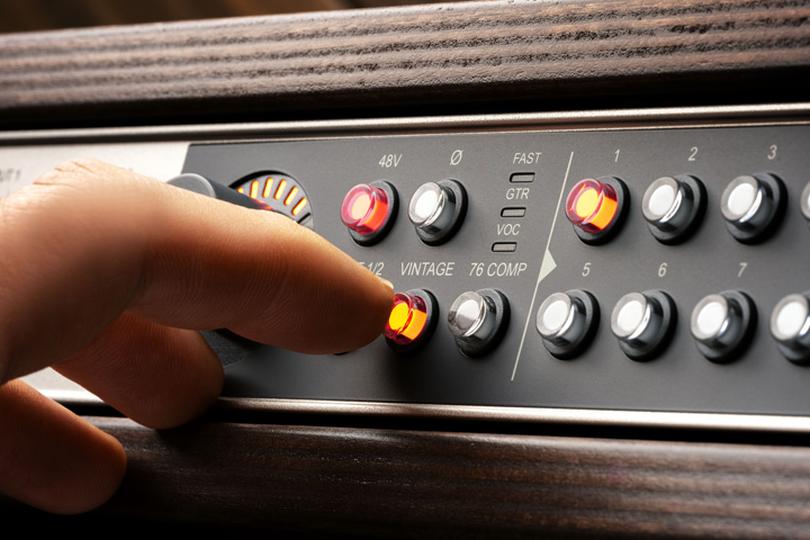 При активации Vintage-режима поведение тракта заметно меняется. Режим реализован на уровне аналоговой схемы, вдохновлённой архитектурой классического лампового предусилителя UA 610. Это его современная аналоговая интерпретация, воссоздающая ключевой принцип: насыщение и мягкое скругление пиков для получения тёплого, собранного звука. На вокале появляется ощущение объёма и присутствия, напоминающее о ламповых каналах. На гитарах и синтезаторах — насыщенность без потери атаки и читаемости. Такой характер формируется ещё до аналого-цифрового преобразования и становится частью исходного материала, а не результатом последующей обработки.