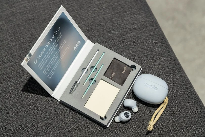 Набор для ухода за TWS-наушниками. Мы не рекомендуем чистить наушники ватными дисками или палочками — для этого есть специальные средства. Sudio представила свой набор, в котором есть всё необходимое для поддержания гигиены ваших наушников: салфетки, очищающая губка, кисточка, очищающая ткань и инструкция с советами по уходу. Похоже на косметичку для наушников. Её можно использовать с моделями любых брендов.