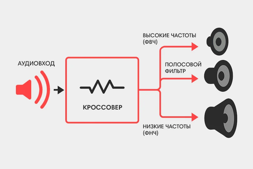 Чтобы понять принцип работы кроссовера, нам придется рассмотреть азы частотной фильтрации. Аудиосигнал от усилителя — это сложный набор частот, от низких до высоких. Кроссовер разделяет этот сигнал на несколько диапазонов, каждый из которых направляется к соответствующему динамику.