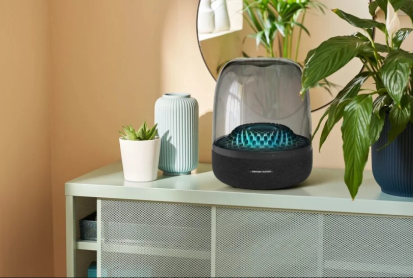 Пожалуй, самым ярким из них, по крайней мере, с точки зрения дизайна, является Bluetooth-колонка Aura Studio 4. Harman Kardon — далеко не первая компания, которая вспоминает прошлую славу при разработке юбилейных продуктов. Напомним, что колонки SoundSticks, разработанные Джонатаном Айвом, теперь являются частью постоянной экспозиции нью-йоркского Музея современного искусства. Колонка Aura Studio 4 напоминает знаменитый стеклянный сабвуфер SoundSticks и представляет собой яркий образец промышленного дизайна. В качестве бонуса, — Auro Studio 4 — это первая колонка Harman Kardon, произведённая из переработанных материалов.