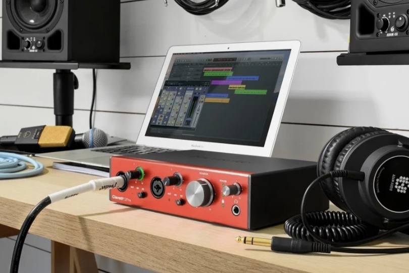 Аудиоинтерфейс, он же звуковая карта, — компактный прибор, который преобразует аналоговый звуковой сигнал в цифровой и наоборот. При этом он не только принимает его, но и раздает уже оцифрованный сигнал через наушники или внешнюю акустику. Как правило, в компьютерах и ноутбуках уже есть входы и выходы формата «мини-джек», но для добротной записи они не подходят — только для обычной гарнитуры или офисного микрофона, которые не отличаются высоким качеством.