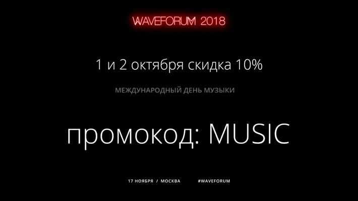 В честь этого события действует промокод MUSIC, который дает скидку 10% на приобретение категории билетов «Стандарт», «Оптимум» и «Максимум». Промокод активен только 1 и 2 октября! Формат участия вы можете выбрать на сайте мероприятия: ТУТ