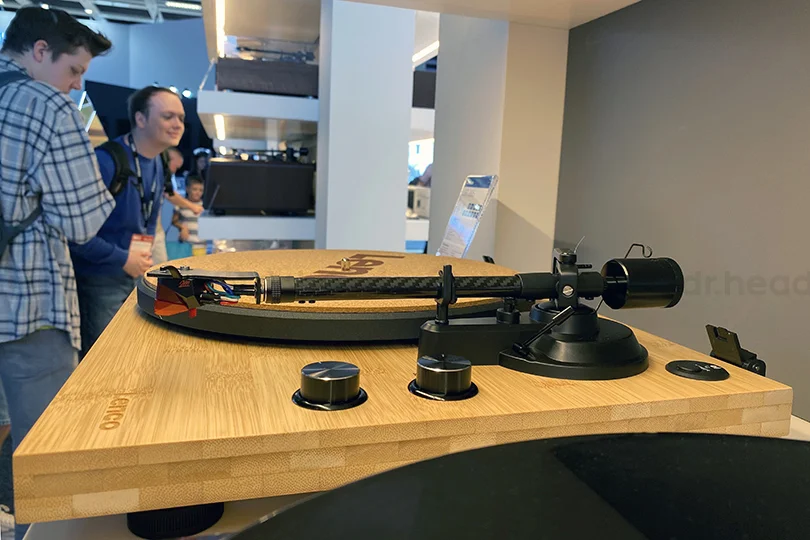 Бренд следует тренду на экологичность, поэтому стол проигрывателя изготовлен из бамбука. Это легко возобновляемый материал, если вспомнить с какой огромной скоростью он растет. Металлический опорный диск покрыт толстым слипматом из пробкового дерева — это очень эффектно.