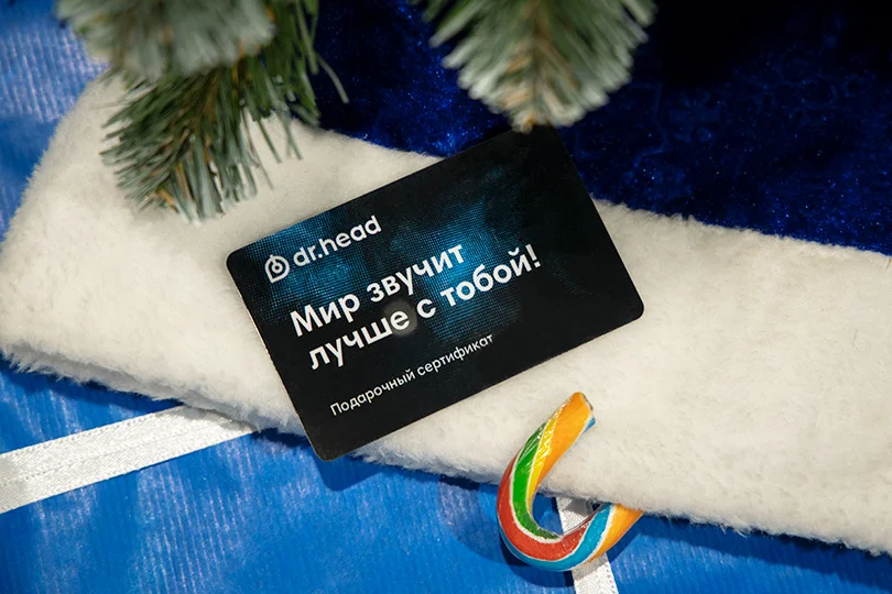 В нашем блоге и соцсетях мы делимся новогодними подборками, в которых рассказываем, что подарить всем, кто любит музыку. Например, проводные наушники или ЦАП/усилители подойдут тем, кто уже готов сделать следующий шаг в аудио, а недорогие подарки можно положить под ёлку коллегам или друзьям. А если вы не знаете, что преподнести близкому человеку, подарите ему возможность выбирать — подарочные сертификаты Dr.Head можно оформить на любую сумму и подарить либо в электронном формате, либо в виде пластиковой карты.