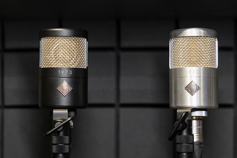 Матовый корпус напоминает 023 Bomblet, но по форм-фактору СОЮЗ 1973 ближе к Neumann TLM 103 и также выпускается в чёрном и серебряном цветах. На передней части микрофона — логотип бренда красивого «винтажного» оттенка. Если у тех же Neumann Berlin цвет логотипа указывает на схемотехнику (ламповую или транзисторную), то у СОЮЗ 1973 он смысловой нагрузки не несёт. Над логотипом гравировка «1973» — выглядит аккуратно и минималистично. Капсюль прикрыт металлическим грилем, а в нижней части корпуса расположен коннектор XLR и аттенюатор на -10 и -20 дБ. Микрофон устанавливается на стойку с помощью стандартного крепления, хотя, на наш взгляд, заслуживает демпфирующего подвеса «паук».