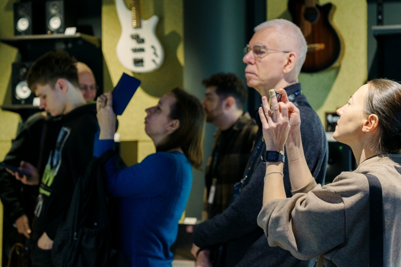 Среди гостей были звукорежиссёры, звукоинженеры, музыканты, педагоги, продюсеры и другие специалисты, которым бренд-менеджер направления Pro Audio Гагик Маргарян продемонстрировал пространства магазина, и, в первую очередь, нашу студию, оснащённую самым современным оборудованием.