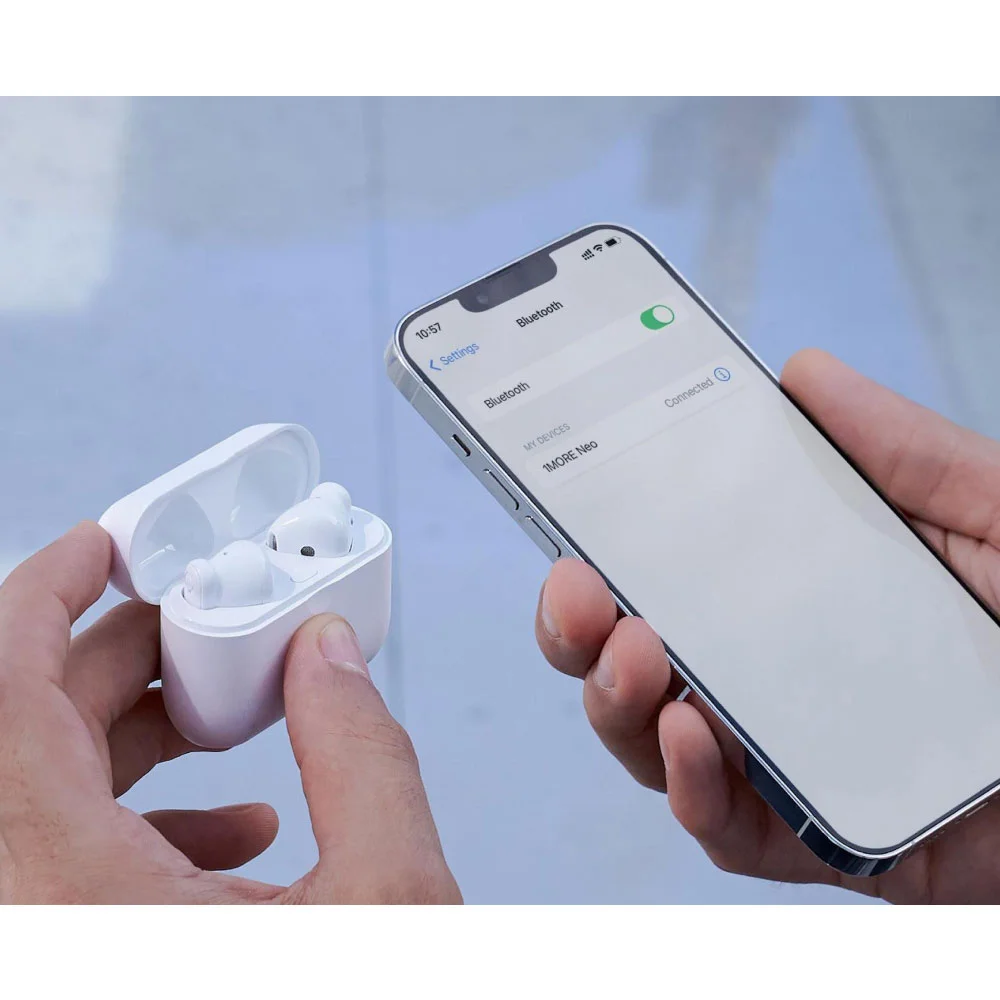 1MORE NEO оснащены чипом Bluetooth 5.2 с низким энергопотреблением и превосходной защитой от помех — никаких спонтанных отключений даже в толпе. Совместимость с устройствами Android и iOS.