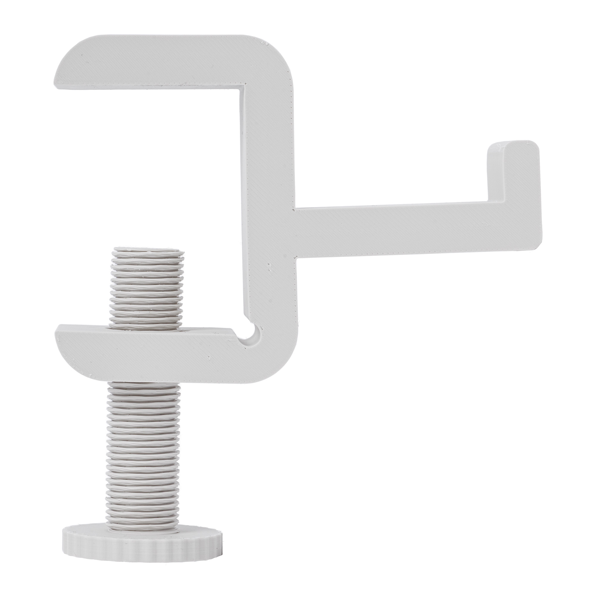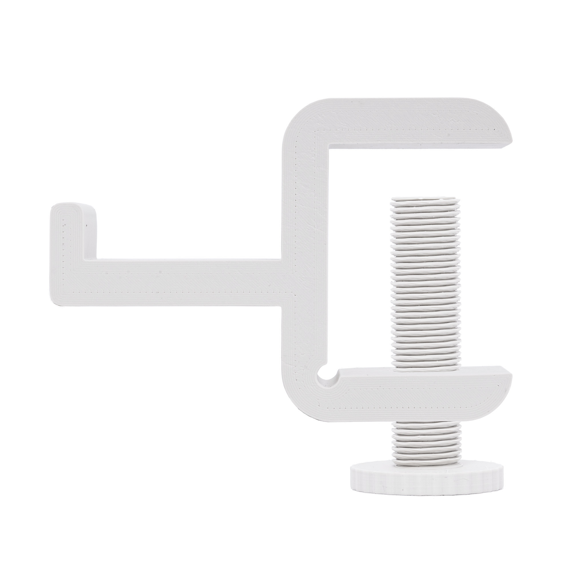 Крепление реализовано с помощью винтовой струбцины — без клея, без сверления и без следов на столе. Держатель легко устанавливается и так же легко снимается или переставляется в другое место. Он надежно фиксируется на столешницах разной толщины, не царапая поверхность.