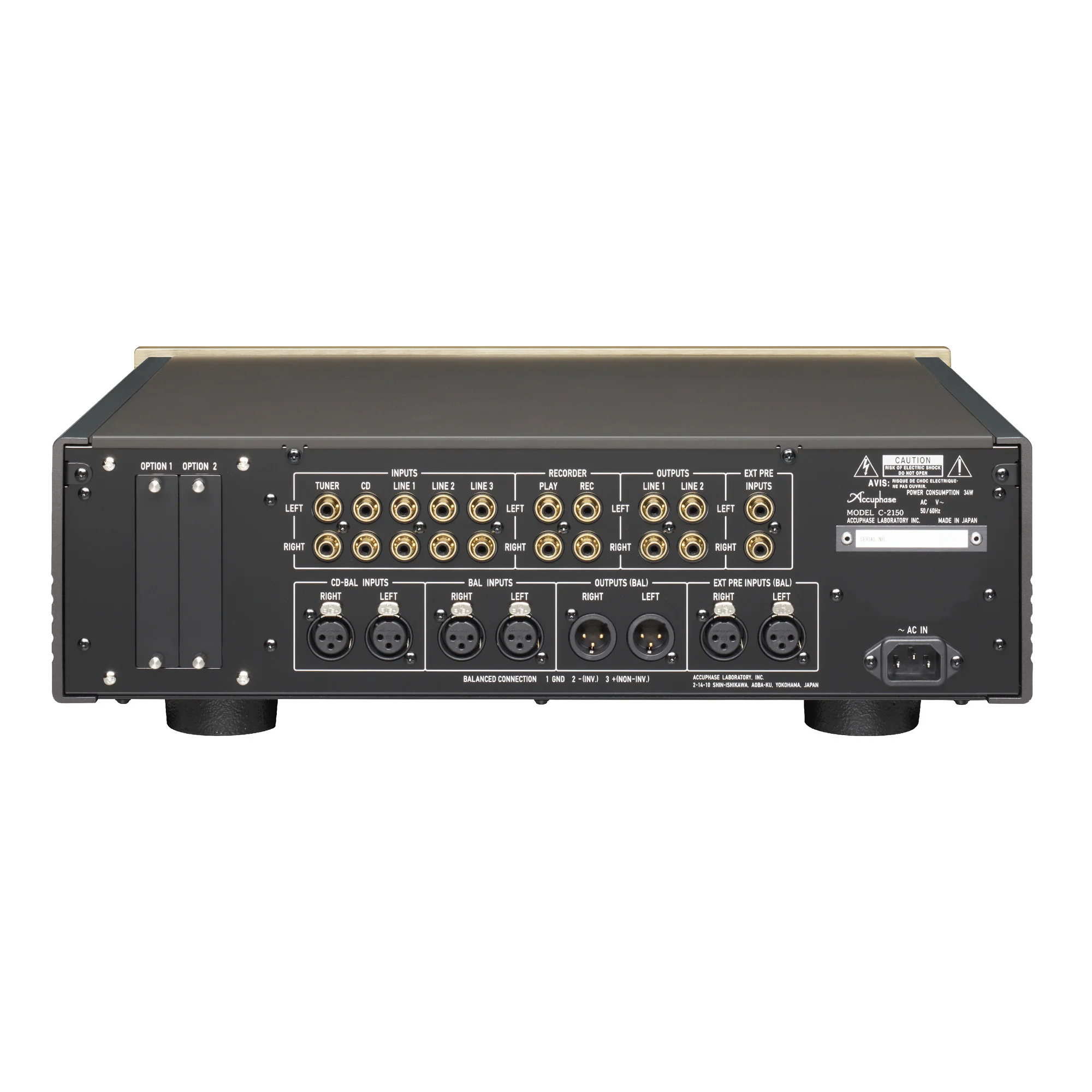 Accuphase C-2150 может быть оснащён двумя опционально устанавливаемыми платами: DAC 40 и AD 30. Встраиваемая плата DAC 40 оснащена цифро-аналоговым преобразователем MDS++ (24bit/192Khz). Она имеет: коаксиальный вход (RCA S/PDIF 75 om), оптический вход (TosLink) и вход USB 2.0. На плате AD 30 расположен ММ/МС фонокорректор.