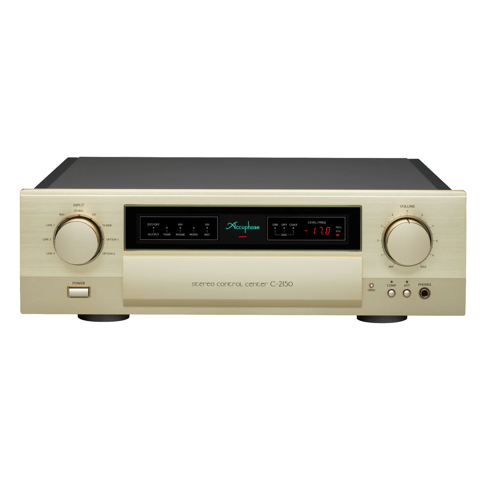Блок регулятора громкости AAVA ступенчато изменяет уровень сигнала в зависимости от положения регулятора. Результирующий ток даёт переменный коэффициент усиления цепи, который и регулирует громкость музыкального сигнала. Соответствующий ток объединяется и преобразуется в напряжение на преобразователе (I-V) перед отправкой на следующий этап. Усилители напрямую изменяют коэффициент усиления и позволяют добиться изменения громкости без изменения волнового сопротивления а также шума и различных искажений. Новейший регулятор громкости AAVA обеспечивает невероятную гладкость звучания и абсолютно комфортное прослушивание музыки на разных уровнях громкости. Ручка регулятора громкости Accuphase C-2150 выточена из высококачественного цельного куска алюминия.