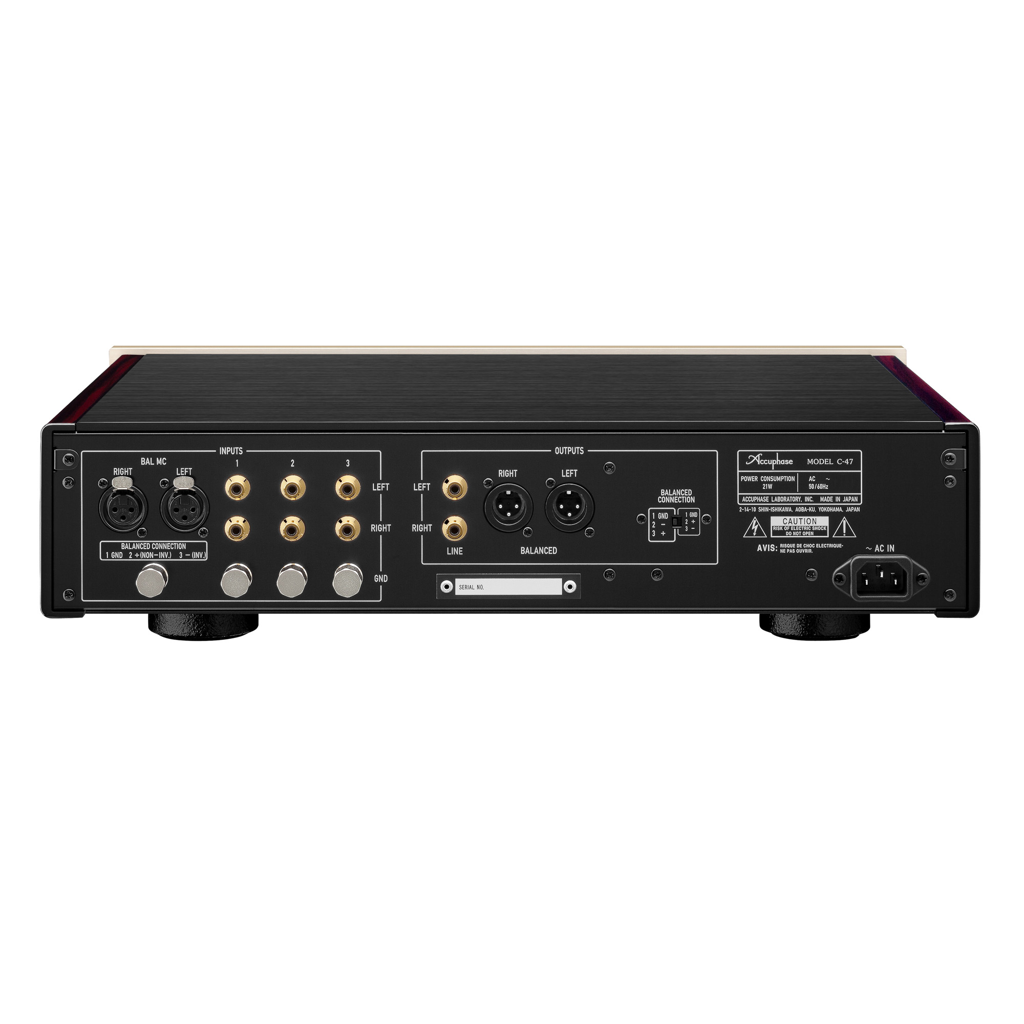 C-47 имеет двухкаскадную конструкцию с малошумящим усилителем, оптимизированным для работы с картриджами MC и MM и высокоточным усилителем-эквалайзером, предназначенным для выравнивания сигнала. Благодаря разработке малошумящего усилителя с высоким коэффициентом усиления (MC: 50 дБ, ММ: 20 дБ) влияние любых шумовых составляющих в последующем усилителе-эквалайзере сведено к минимуму, что обеспечивает отличные характеристики с низким уровнем шума в сочетании со сверхточными характеристиками выравнивания.