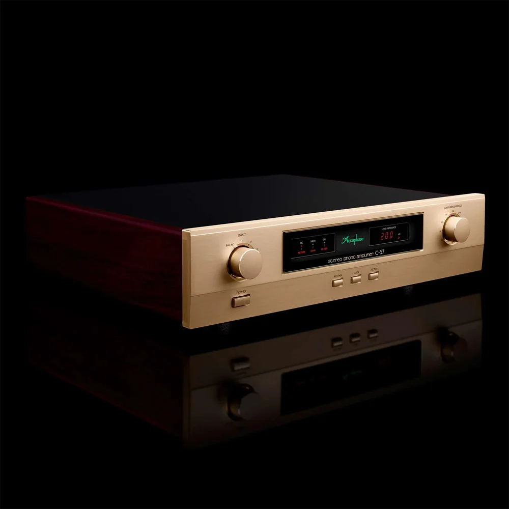 Компания Accuphase выпустила усилитель C-27 phono в 2008 году и с тех пор доказала, что технологическое развитие аналоговых усилителей постоянно развивается в эпоху, когда цифровые источники звука являются нормой. В 2014 году были выпущены модели C-37, а в 2020 году - C-47 , которые завоевали популярность как усилители-фоноэквалайзеры с богатой музыкальностью. В C-57 интегрированы новейшие технологии предусилителя и усилителя мощности для достижения полностью сбалансированной передачи сигнала от входа к выходу. В сочетании с усилителями мощности с равномерным током можно создать полностью сбалансированную систему передачи. Усилитель MC также оснащен системой ANCC для улучшения характеристик искажений и шума. C-57 - это эволюционный шаг вперед, который включает в себя самую передовую из доступных технологий с низким уровнем шума и полностью передает вкус и очарование стилуса, позволяя вам ощутить всю глубину воспроизведения аналоговых дисков.