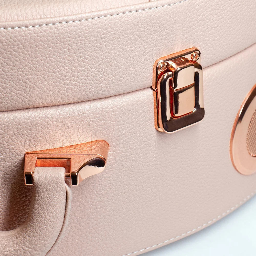 Виниловый проигрыватель Movie - это отличный подарок для ценителей винтажных вещей, но живущих в ногу со временем. Отделка из кожи в благородных оттенках, застёжки цвета розового золота и удобная ручка под цвет корпуса, придают проигрывателю невероятно стильный вид и позволят ему стать превосходным дополнением практически любого интерьера, в котором хочется подчеркнуть ретро стиль. Продуманный функционал поможет наслаждаться чистым звучанием любимых музыкальных композиций на виниловых пластинках без границ!