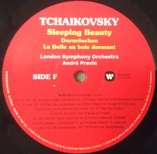 Ремастированная запись балета Чайковского "Спящая красавица", сделанная в легендарной студии Abbey Road Лондонским симфоническим оркестром под управлением знаменитого американского дирижёра, пианиста и композитор Андре Превина. Ремастированная запись на тройном 180-граммовом виниле представлена в оригинальной обложке знаменитого иллюстратора Дика Эллескаса и оригинальной рецензией популярного критика Ноэла Гудвина.