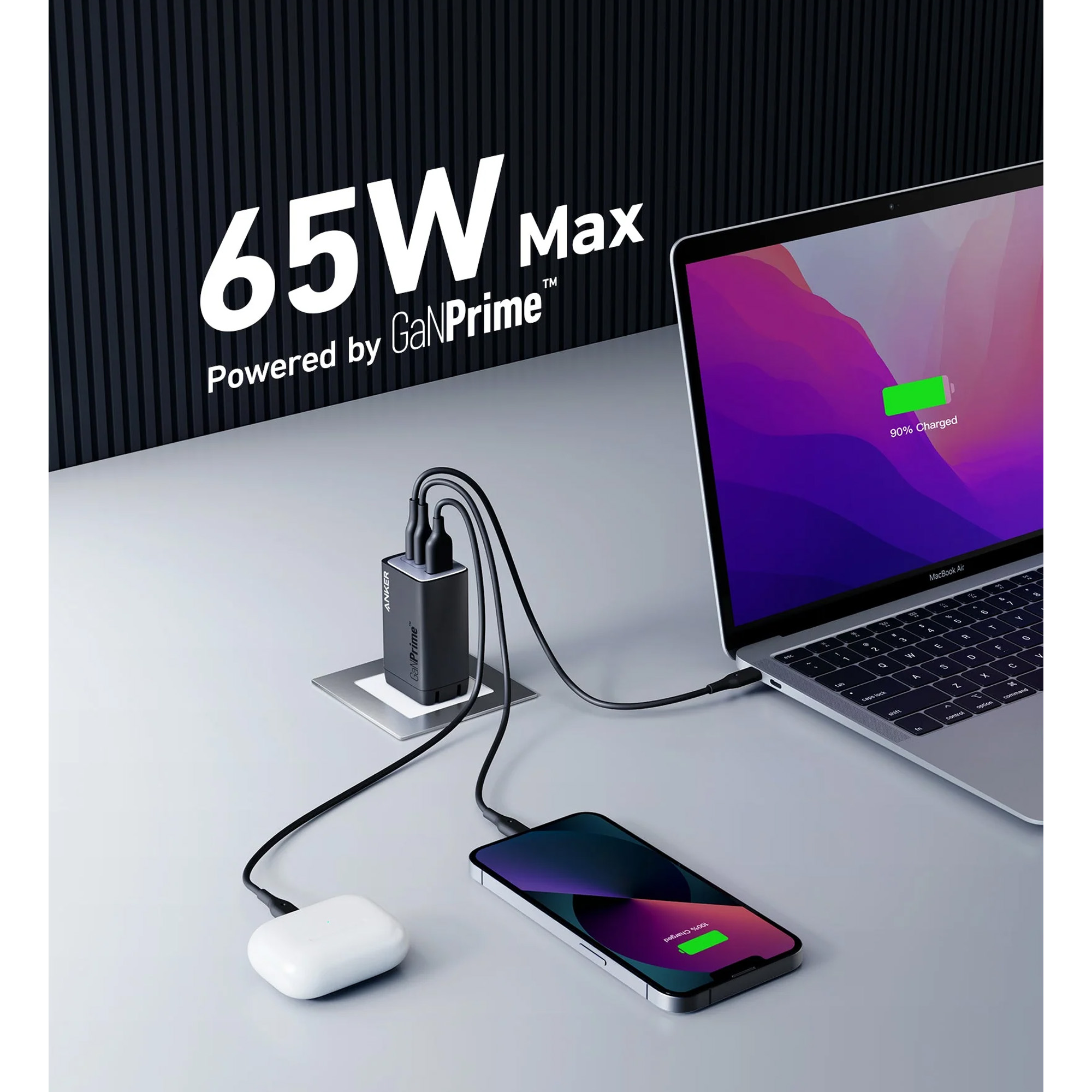 Anker 735 Charger GaNPrime 65W и Anker 762 USB-C to Lightning Cable - зарядное устройство с кабелем usb-c - Lightning мощностью 65 Вт.