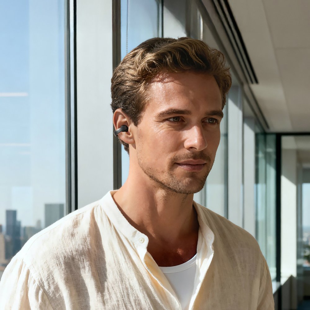 Наушники созданы для комфортного ношения в течение всего дня: их открытая конструкция не изолирует от внешней среды — это удобно на улице, в офисе и во время тренировок, а отсутствие давления внутри уха позволяет слушать музыку долго, не испытывая усталости.