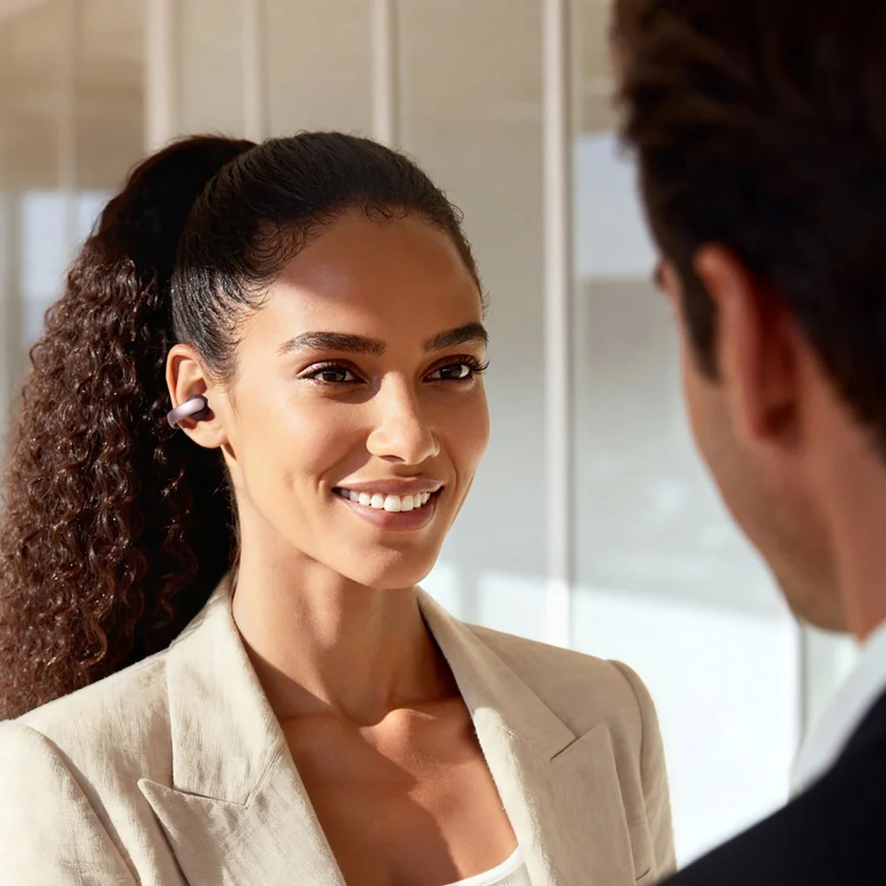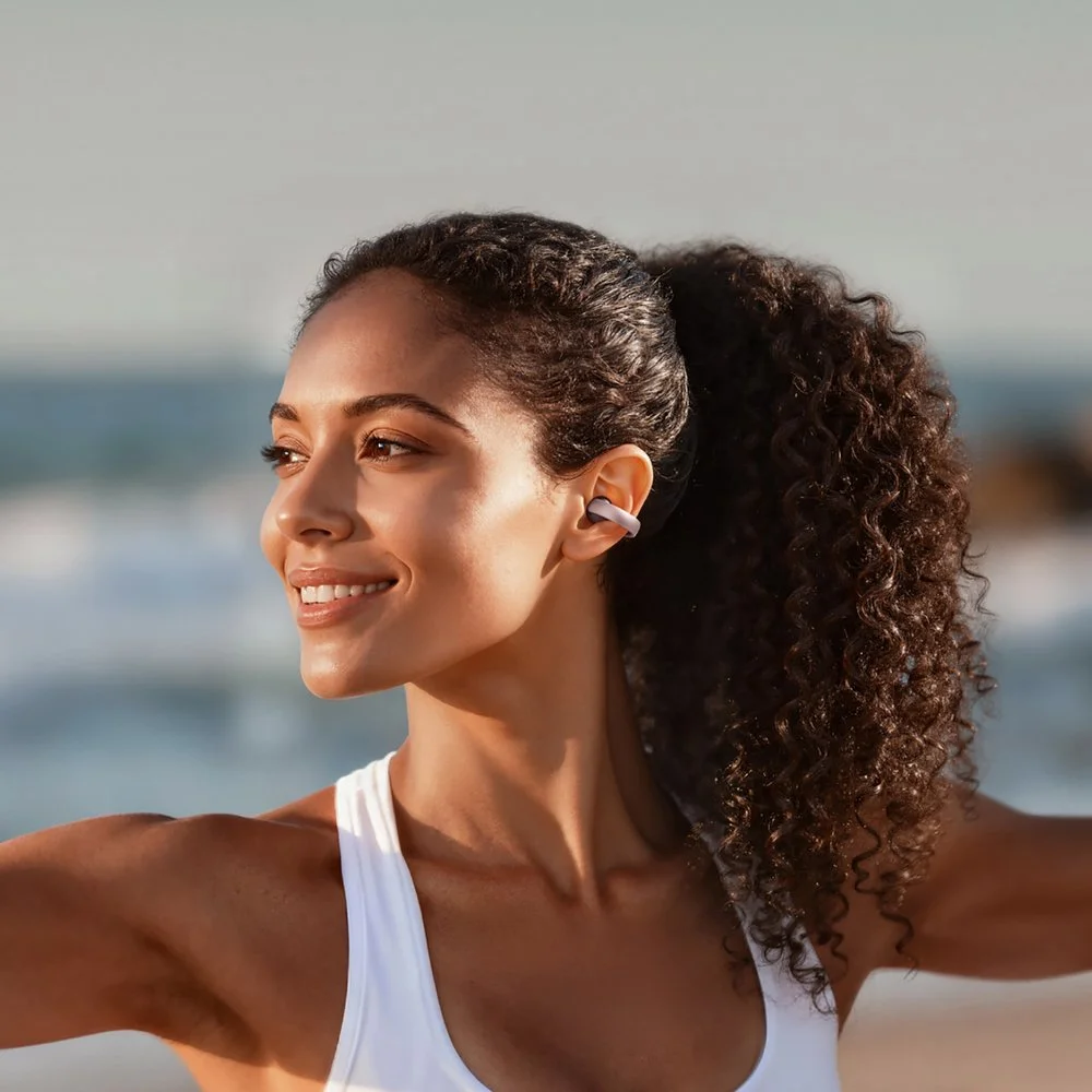 Наушники созданы для комфортного ношения в течение всего дня: их открытая конструкция не изолирует от внешней среды — это удобно на улице, в офисе и во время тренировок, а отсутствие давления внутри уха позволяет слушать музыку долго, не испытывая усталости.
