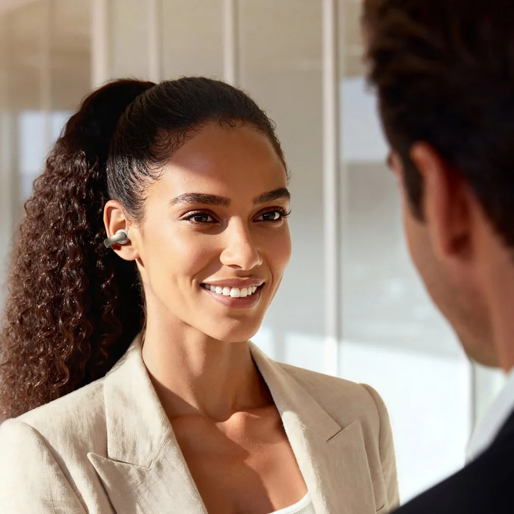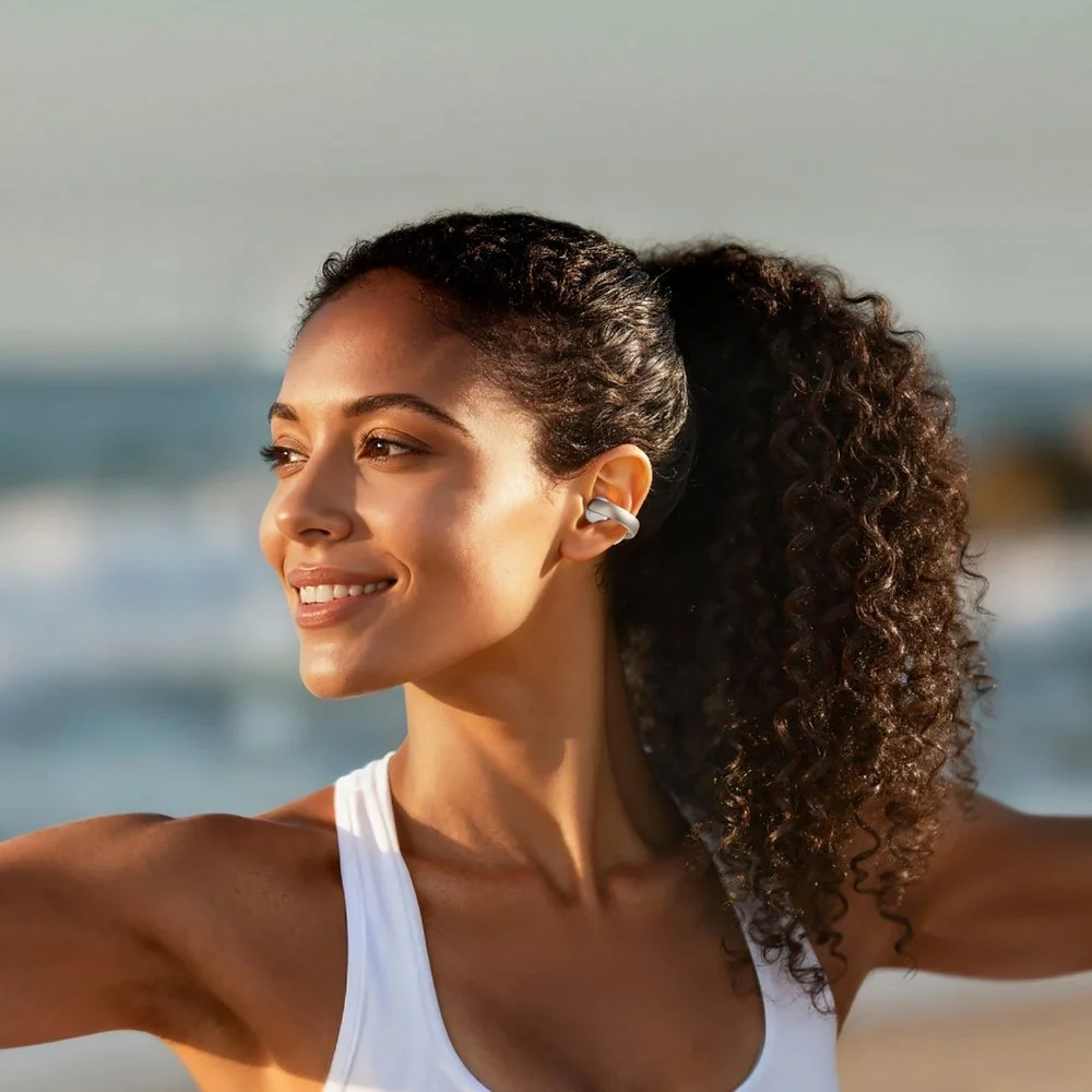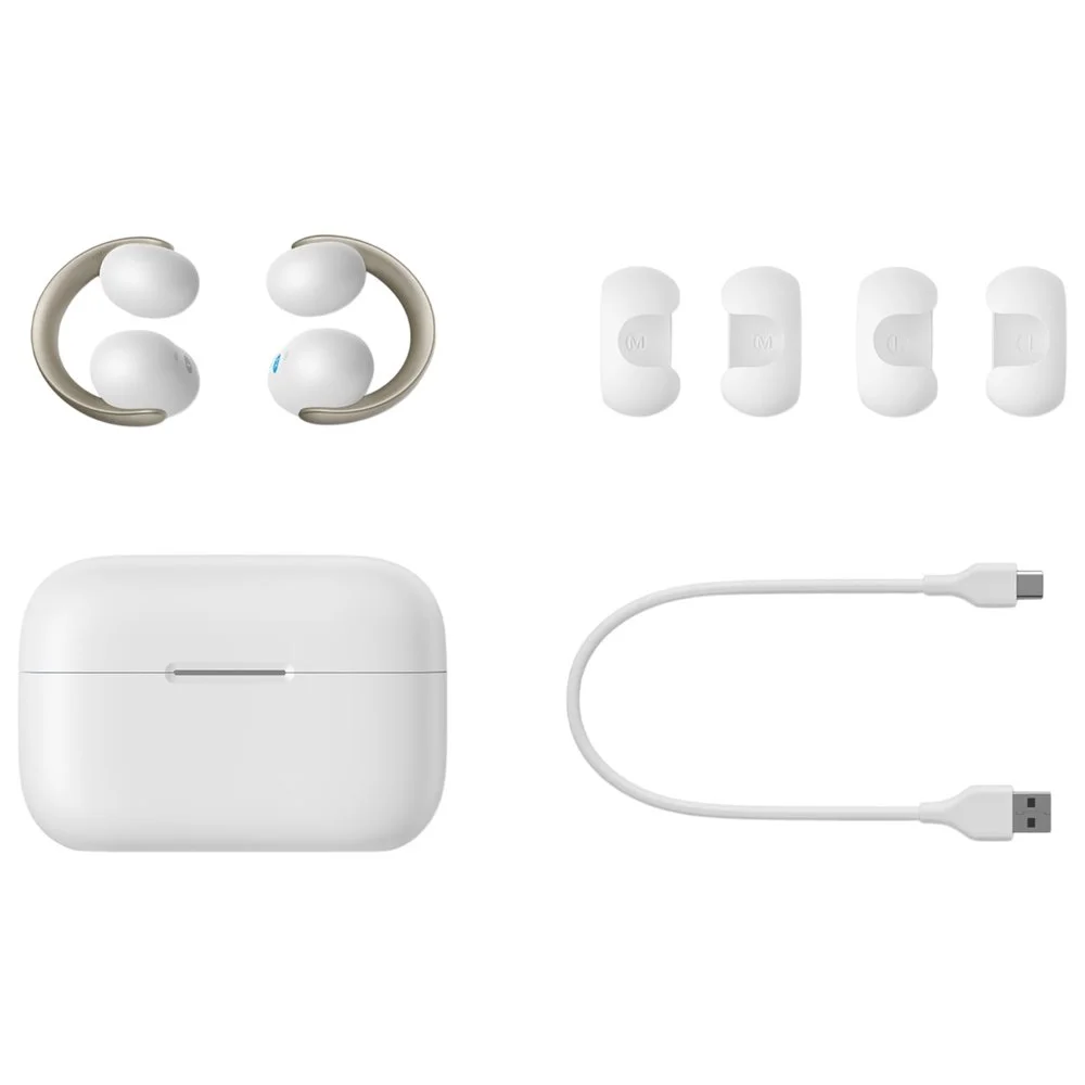 Наушники созданы для комфортного ношения в течение всего дня: их открытая конструкция не изолирует от внешней среды — это удобно на улице, в офисе и во время тренировок, а отсутствие давления внутри уха позволяет слушать музыку долго, не испытывая усталости.