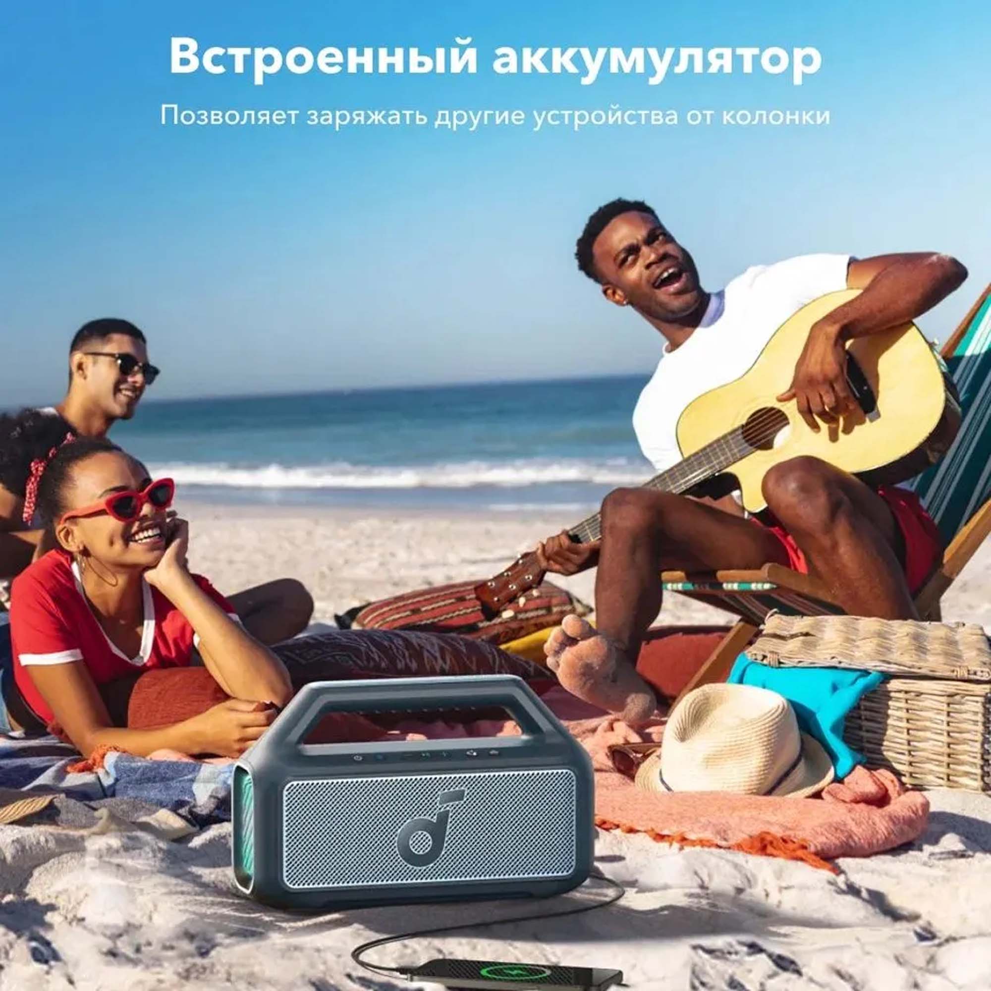 Anker Soundcore Boom 2 - это усовершенствованная версия популярной беспроводной колонки Soundcore Boom, созданная для тех, кто ценит насыщенный, динамичный звук в любом месте. Это компактное, но мощное устройство от бренда Soundcore, входящего в экосистему Anker, предлагает не только громкий и детализированный звук, но и расширенные возможности подключения, включая режим стерео-пары, поддержку приложения управления, а также яркую RGB-подсветку. Устройство позиционируется как универсальное решение для прослушивания музыки дома, на природе или в дороге.