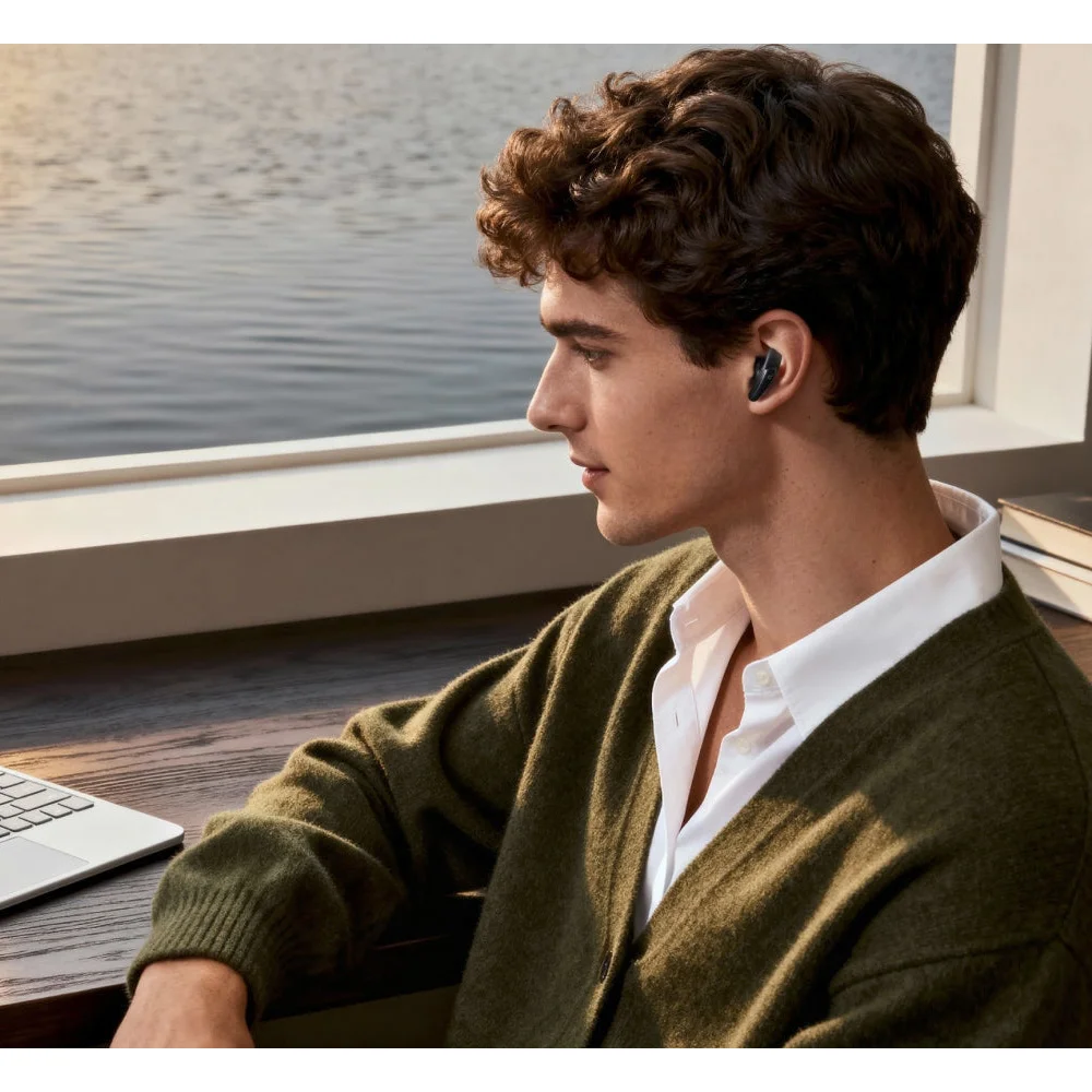 Наслаждайтесь удобной, дышащей посадкой, которая позволяет слышать окружающий шум, чтобы оставаться на связи с внешним миром.