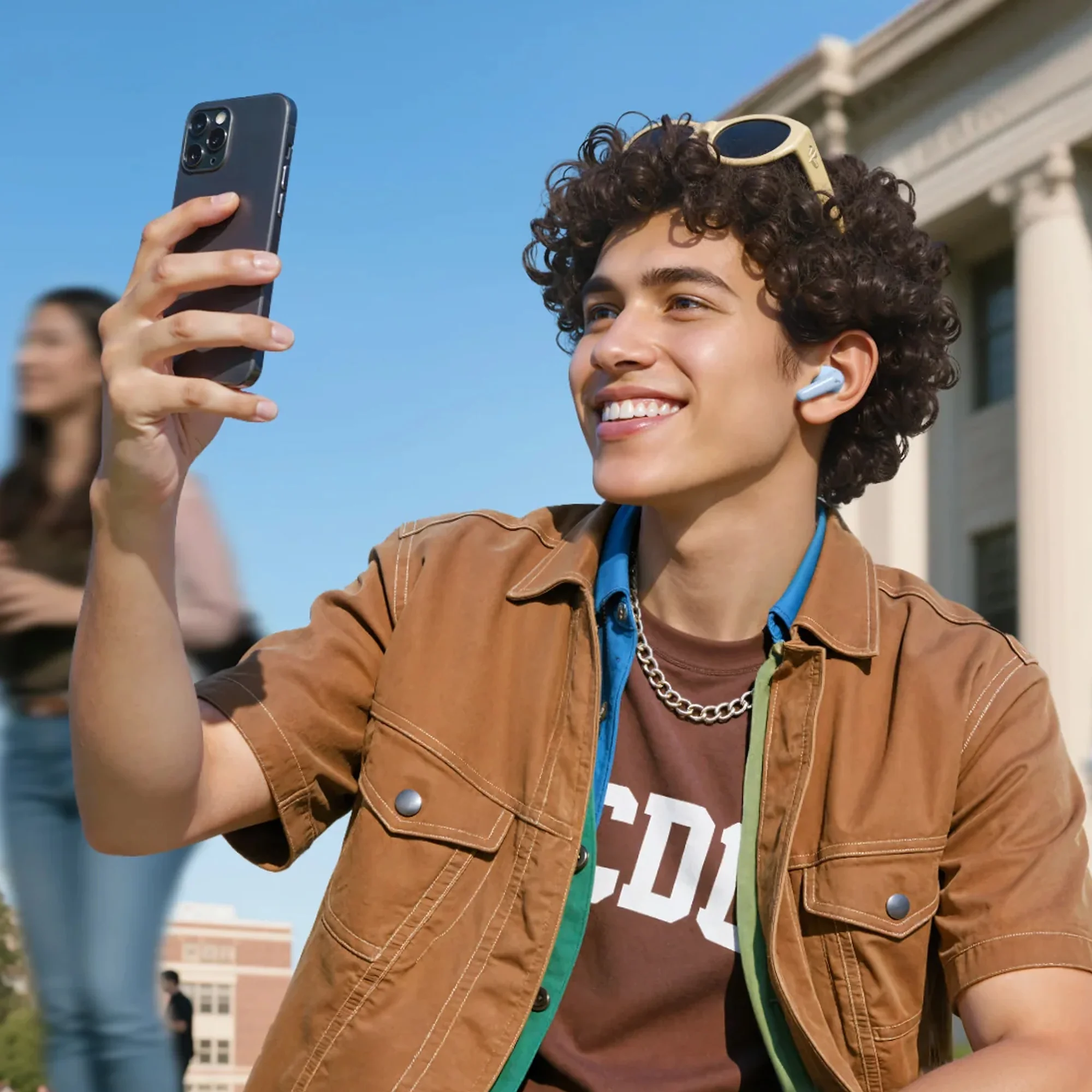 С 6 микрофонами и ИИ-алгоритмом для подавления шума, ваш голос выделяется, будь то в шумном офисе, переполненном поезде или на ветреной улице.