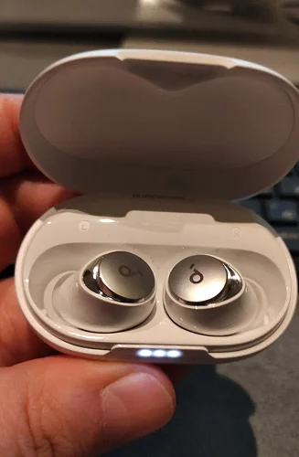 Поместите зарядный чехол Space A40 на беспроводное зарядное устройство для удобной подзарядки или используйте прилагаемый кабель USB-C.