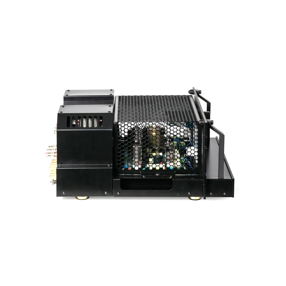 Усилитель T.H.E. 10 построен на классических пентодах TUNG-SOL EL34B (сделано в России) по ультралинейной схеме. Стабилизированное напряжение смещения сеток выходных ламп в сочетании с самобалансирующимся фазоинверторным каскадом обеспечивает максимальную точность воспроизведения даже с самыми капризными АС.