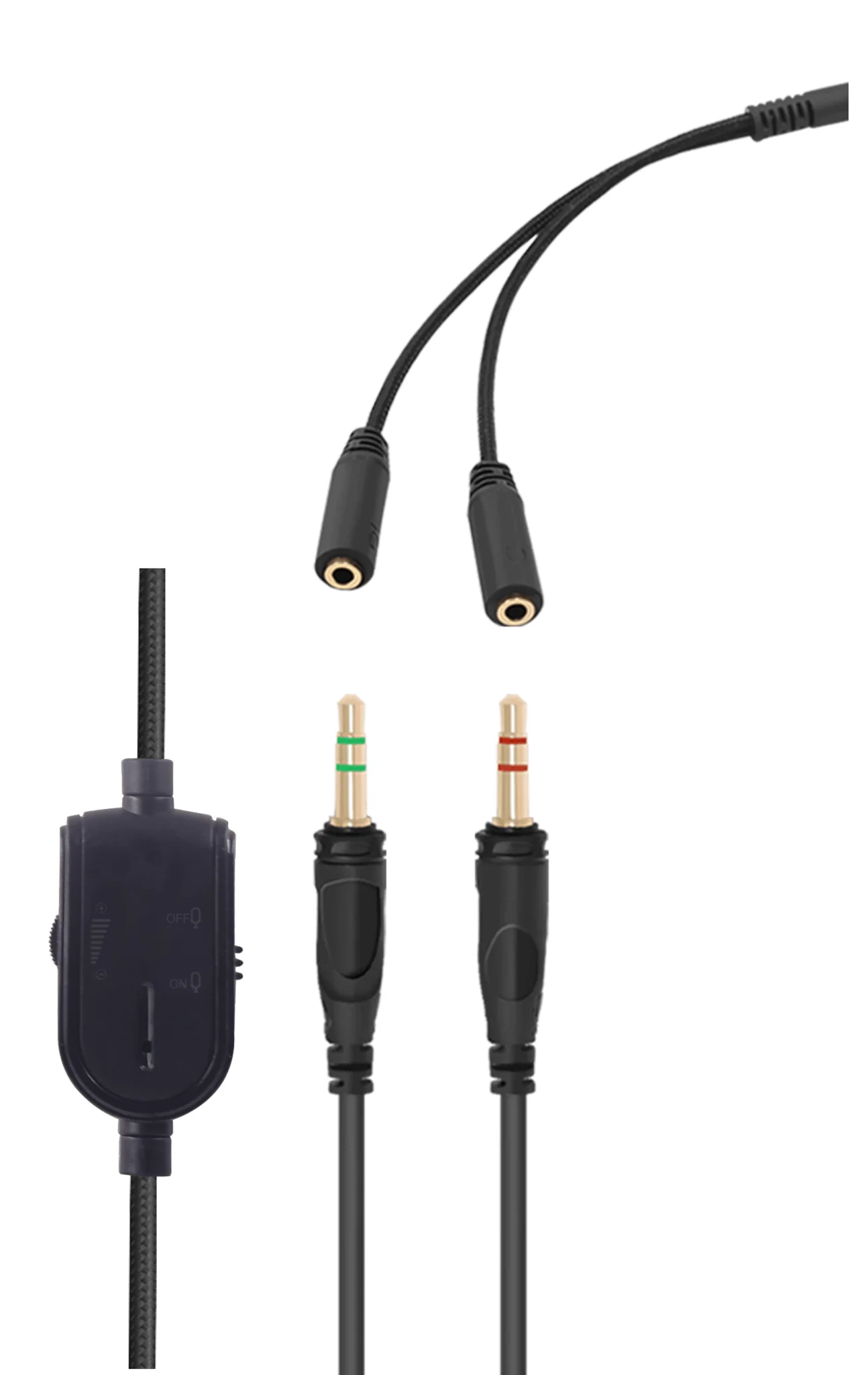 Разветвитель делает гарнитуру совместимой с различными другими устройствами, такими как ноутбуки, мобильные телефоны и консоли.