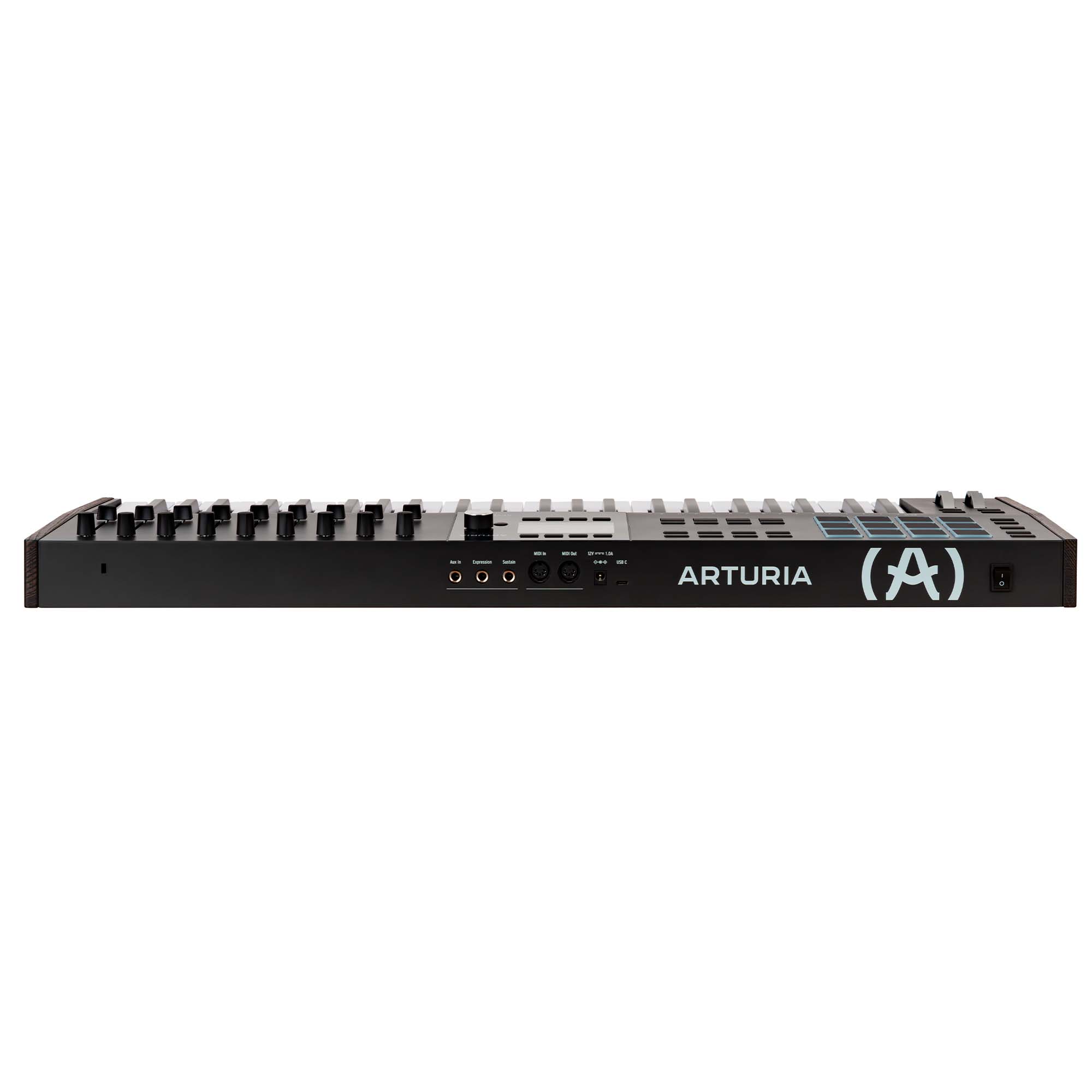 - разъемы под педали экспрессии и сустейна, четыре выхода и один вход CV с управлением гейтом, питчем и модуляцией, порты MIDI и USB и 3 дополнительных входа Aux;
