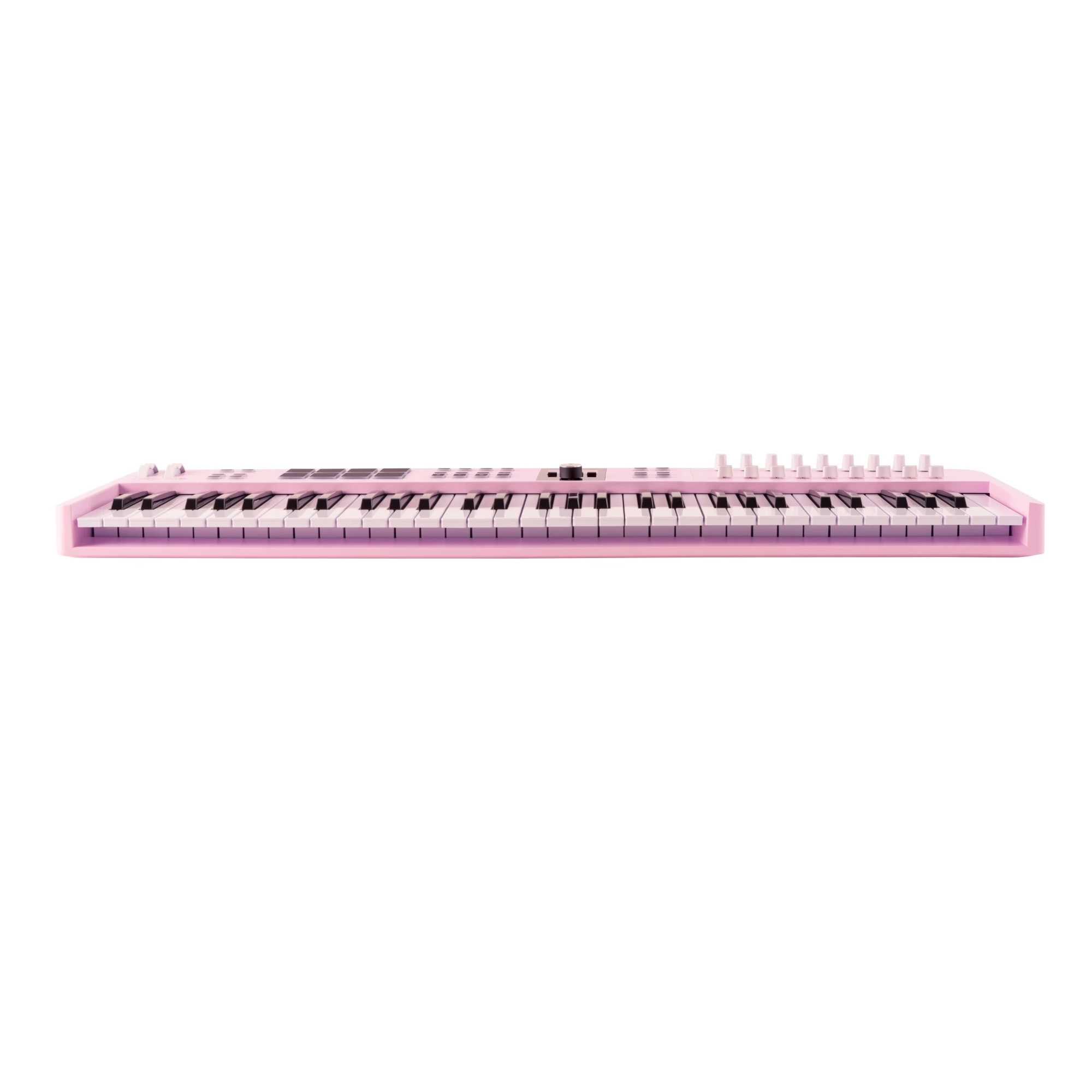 Arturia KeyLab Essential 61 mk3 также является и удобным MIDI-контроллером, третье поколение устройств имеет обновленный дизайн с продвинутым интуитивным управлением. Имеются предварительные настройки для Ableton Live, Logic Pro, FL Studio, Cubase, Bitwig Studio, а также широкая совместимость с протоколами MCU и HUI. По центру контроллера имеется крупный информативный дисплей 2,5" с четырьмя кнопками управления параметров навигации. Встроенный арпеджиатор позволяет переключаться между режимами - Scale, Chord Play, Arpeggiator (с пресетами) и Hold.