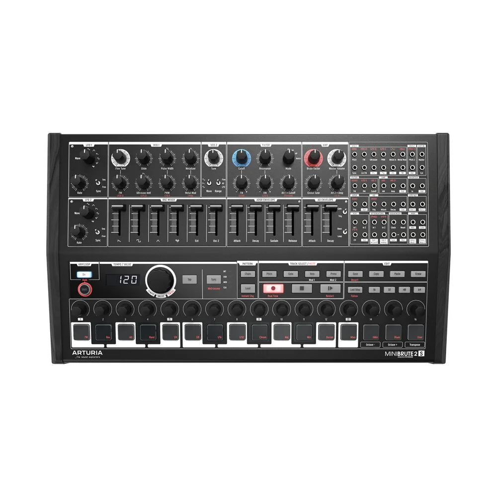 Arturia MiniBrute 2S Noir представляет собой вторую версию нового аналогового синтезатора MiniBrute 2, от которой данная модель отличается наличием более продвинутого секвенсера, а также отсутствием клавиатуры. Вместо нее здесь представлены пэды для более удобного управления секвенциями. Все остальные аспекты остались неизменными, и синтезатор MiniBrute 2S полностью соответствует интерфейсу и всем техническим характеристикам оригинальной модели.