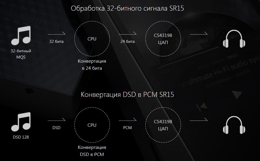 SR15 имеет на борту ЦАПы CS43198, относящиеся к классу MasterHIFI™, и это впервые в индустрии портативного Hi-Fi. Философия Astell&Kern предполагает, что звучание должно быть максимально близко к оригиналу. И микросхема CS43198 из тех ЦАПов, что способна приблизить звучание к исходному, работая в связки с аналоговыми усилителями Astell&Kern. В результате мы получаем более живой и теплый звук без искажений. Более того, A&norma SR15 поддерживает нативное побитное воспроизведение формата DSD, тем самым приближаясь еще на шаг к настоящему Hi-Fi.
