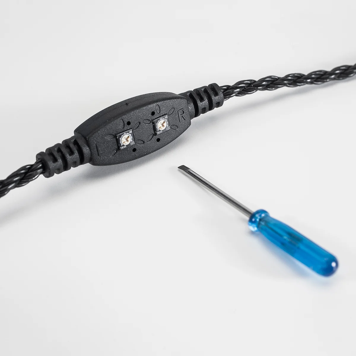 Наушники Layla подключаются к кабелям с помощью нового механизма алюминиевого защелкивающего хомута, который дает надежное и плотное крепление и защищает наушники от попадания пота и пыли.