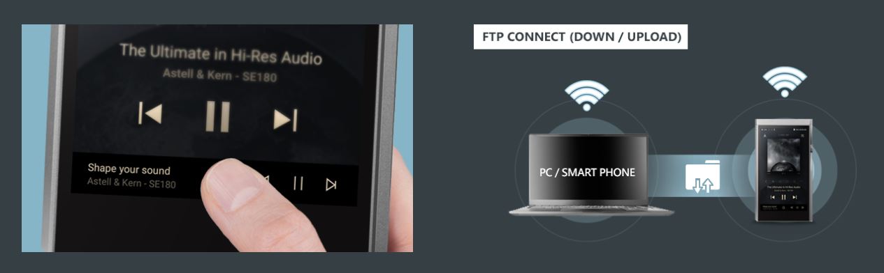 Управление фонотекой больше не требует кабеля! Новая функция SE180, AK File Drop, позволяет свободно передавать файлы по беспроводной сети через ПК, смартфон или FTP-клиент (при подключении к одной сети).