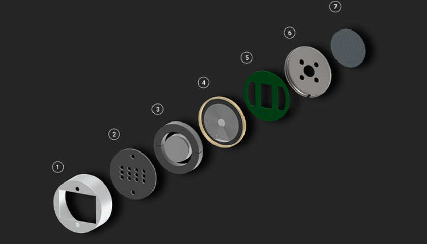 Применение ультратонкой и лёгкой фольги с напечатанным алюминиевым рисунком значительно снижает массу мембраны, отмечает Astell&Kern. Корпус мембраны изготовлен из алюминия, обработанного на станках с ЧПУ.