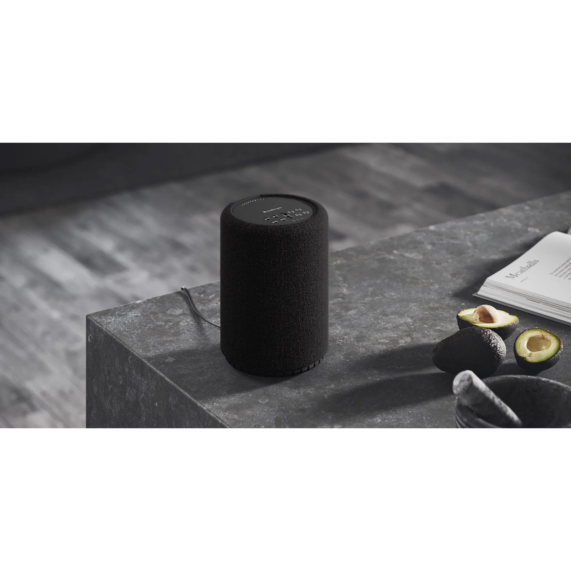 Беспроводная колонка Audio Pro A10 MKII W выполнена в модном дизайне в виде цилиндра, практически вся боковая поверхность которого закрыта тканью.