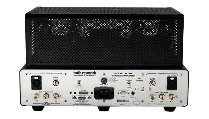 Главное отличие усилителя VT80SE от оригинального VT80 — это использование вместо электронных ламп KT120 более производительных KT150 в выходной части усилительного тракта. Компания Audio Research использует вакуумную лампу КТ150 во многих других своих усилителях от VSi75 до REF750SE. Это отличная высокопроизводительная лампа со средней продолжительностью работы 3000 часов, что соответствует годам непрерывной работы.