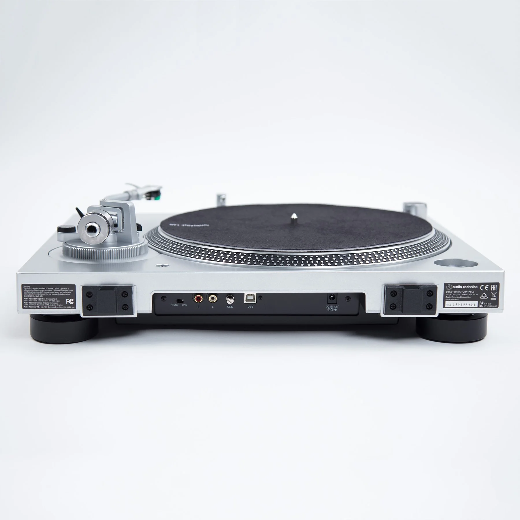 AT-LP120X – это профессиональный проигрыватель виниловых пластинок с новым безредукторным мотором, обеспечивающим быстрый запуск, и USB-выходом для прямого соединения с компьютером. Проигрыватель поддерживает воспроизведение на скоростях 33/45/78 оборотов в минуту, а также воспроизведение в обратном направлении. Улучшения так же коснулись и регулируемого динамического антискетинга.