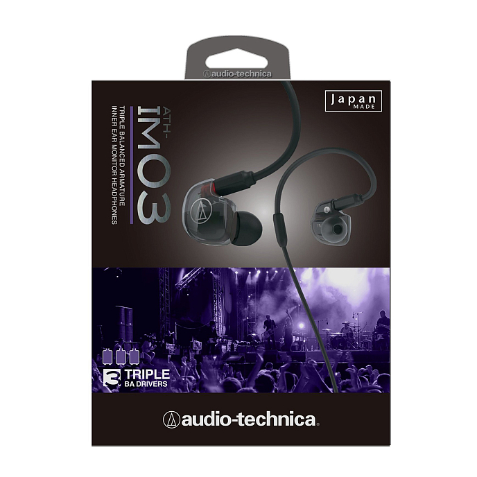 Audio-Technica ATH-IM03 – внутриканальные мониторные наушники с арматурными драйверами, обеспечивающими высочайшее качество звука. Модель имеет по три драйвера на канал. Наушники ATH-IM03 собираются в Японии. Особенности Audio-Technica ATH-IM03: