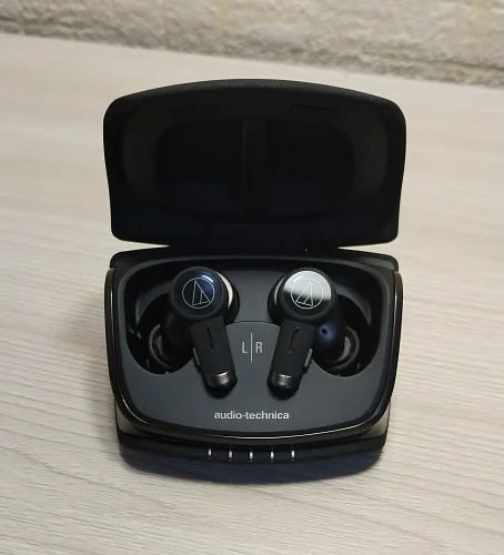 Аккумулятора наушников хватает на 6 часов непрерывного прослушивания музыки, еще 12.5 часов предоставляет зарядный футляр (всего 18.5 часов работы). Audio-Technica ATH-TWX9 защищены от брызг по стандарту IPX4 и поддерживают приложение AT Connect с эквалайзером, настройками сенсорного управления, шумоподавления и другими дополнительными возможностями.