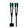Межблочный аудио кабель с разъемами 2 RCA - 2 RCA, Double-Balanced Asymmetrical конструкция проводников. Проводники из монолитной полированной меди Solid Perfect-Surface Copper +(PSC+), 72 V Dielectric - Bias System (DBS), Noise-Dissipation System (NDS), трехслойная система рассеяния помех на основе углерода, воздушные трубки на из фторполимера, плетеный кожух черно-зеленого цвета.