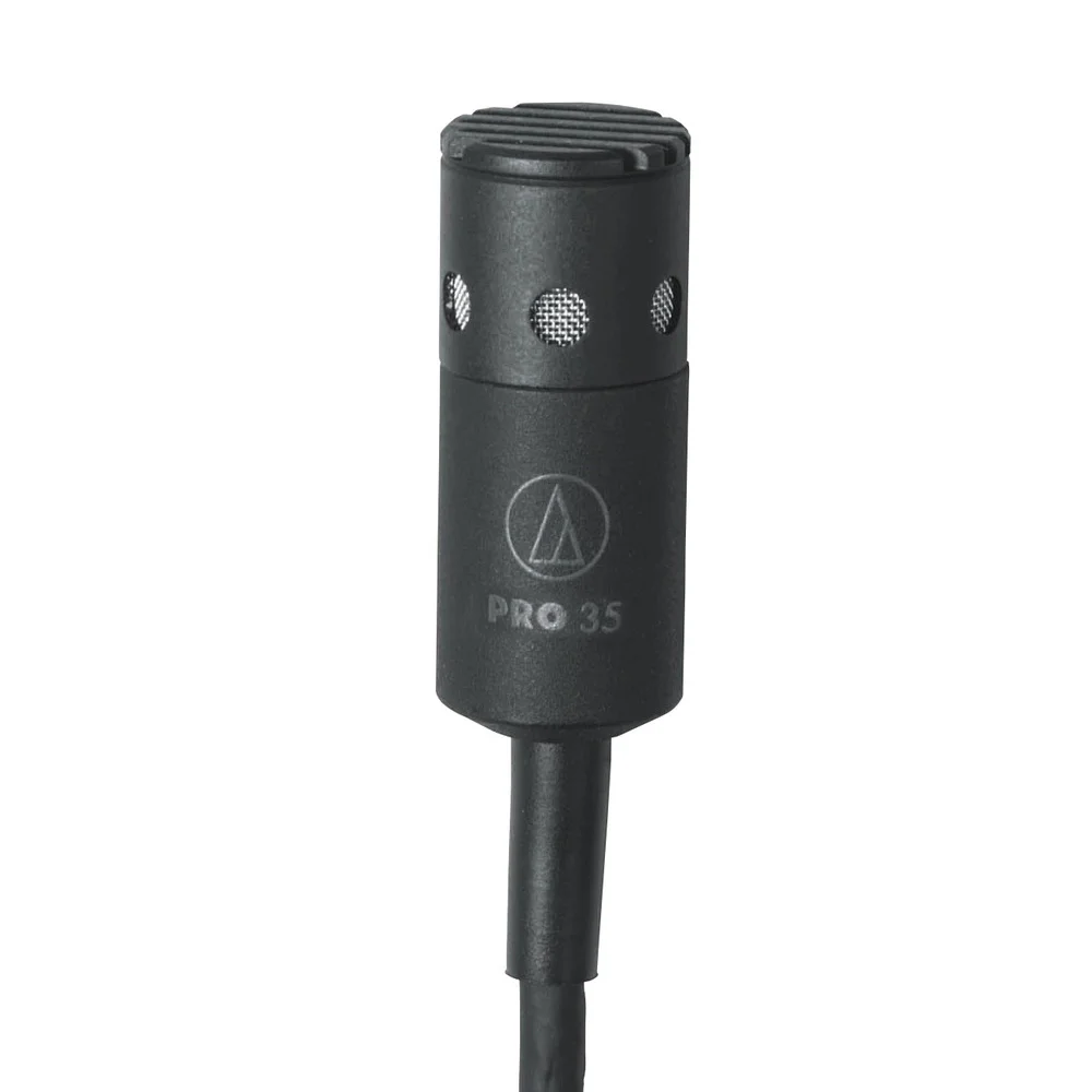 Audio-Technica PRO35 оснащен обрезным НЧ-фильтром, удаляющим частоты ниже 80 Гц. Это дает возможность максимально удалять загрязняющие аудиоканал шумы, включая электрические шумы. Зажим AT8418 UniMount и мягкая сумка для переноски в комплекте. Также микрофон поставляется с модулем питания AT8538, обладающим выходом на трёхконтактный разъем XLRM.
