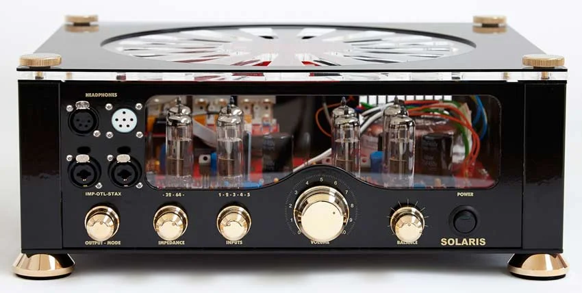 AudioValve Solaris - ламповый усилитель для динамических и электростатических наушников. Диапазон частот: 15 - 10000 Гц. Выходная мощность: до 2 х 12 (на 220 Ом). Сопротивление нагрузки: 3 - 145 000 Ом / Stax. Размеры (Ш х В х Г): 360х140х320 мм. Вес: 10 кг.