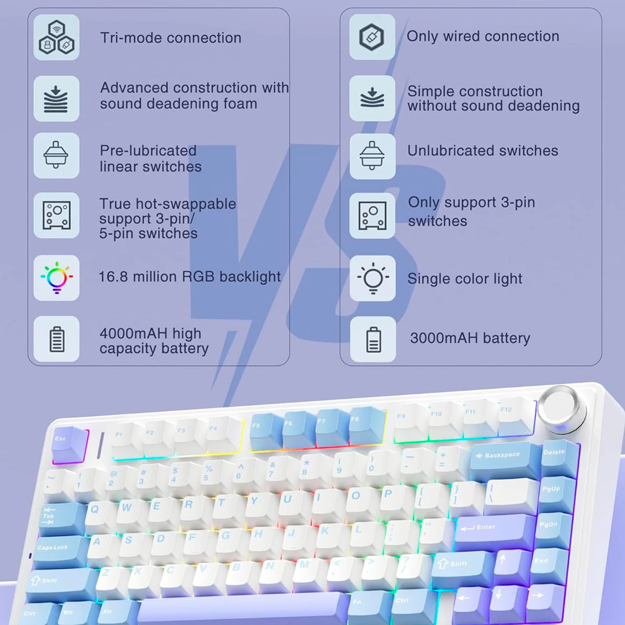 Механическая клавиатура AULA F75 сочетает стильный дизайн и продвинутые технические решения для геймеров и профессионалов. Контрастное сочетание RGB подсветки создаёт выразительный визуальный образ, а переключатели Graywood Switches обеспечивают чёткость и комфорт при наборе текста.