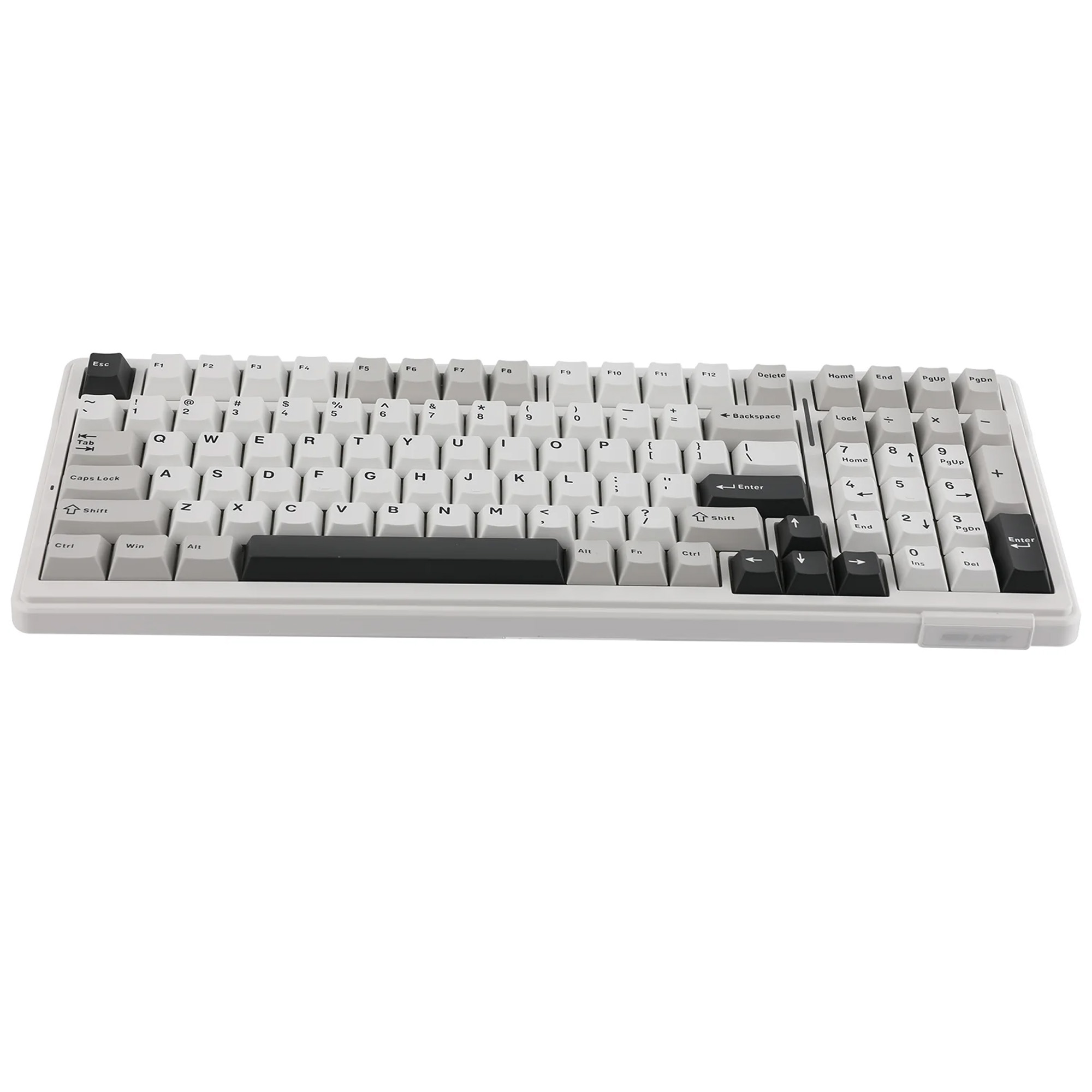 Конструкция выполнена в раскладке с 99 клавишами, включая цифровой блок и многофункциональную поворотную ручку. Это экономит пространство на столе, сохраняя полный набор функциональных элементов. Регулируемые ножки обеспечивают удобную эргономику и оптимальный угол наклона при работе.