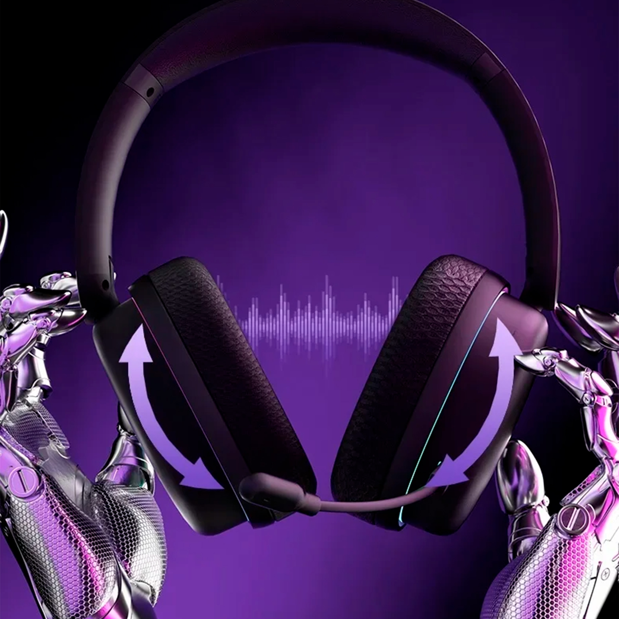 Гарнитура оснащена RGB‑подсветкой, добавляющей стилистическую выразительность. При желании подсветку можно отключить.