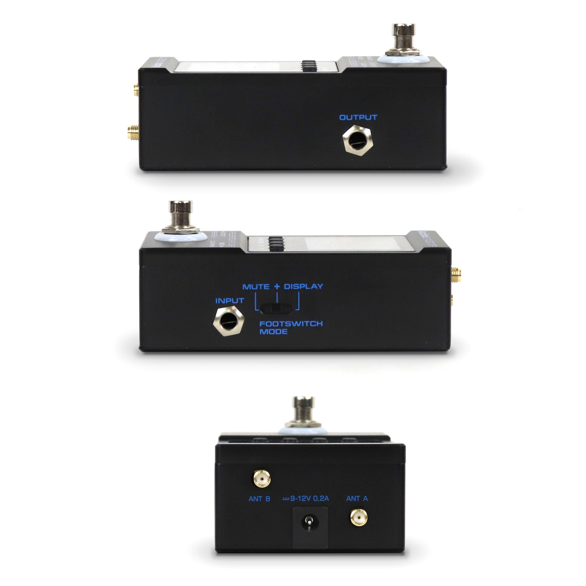 Ножная кнопка-переключатель может выполнять функции выключения выходного звука и переключения экранов приёмник/гитарный тюнер. Переключение может происходить для двух функций синхронно или только для одной из них, в зависимости от предпочтений исполнителя. Это определяется положением отдельного переключателя на боковой панели. Для репетиций без радиопередатчика с правой стороны педали имеется вход для обычного подключения гитары с помощью кабеля. Если в него вставлен разъём, выход приёмника автоматически отключается, при этом тюнер будет продолжать работать.