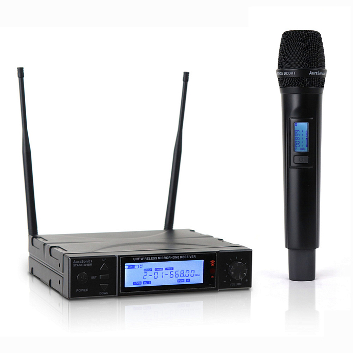 Модели AuraSonics STAGE 200 являются компонентными радиосистемами, предназначенными для широкого круга применения: вокального пения со сцены или в караоке, презентаций, лекций, проведения семейных праздников, а также других мероприятий, где требуются радиомикрофоны. Вы можете сформировать требуемый комплект из одно или двухканального приёмника и одного или двух передатчиков, как ручных, так и поясных.