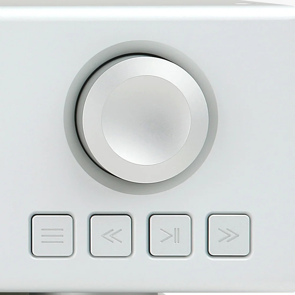 Управлять громкостью и воспроизведением, а также выбирать плейлисты можно и с фронтальной панели самого устройства. Если же в вашей системе уже есть качественный предусилитель, регулируемый выход можно сделать фиксированным и передать функцию регулировки громкости внешнему устройству.