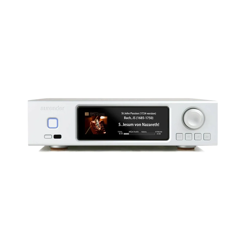 A200 способен работать в роли предусилителя: его с легкостью можно подключить напрямую к усилителю мощности или активной аудиосистеме. Громкость регулируется из приложения AurenderConductor, доступного в версиях для iPad, iPhone и устройств на ОС Android. На входящем в комплект пульте ДУ, выточенном из цельного куска алюминия, есть клавиши для регулировки громкости, отключения звука, выбора входа и выхода, запуска либо остановки воспроизведения и других важных функций, ради которых не придется использовать смартфон или планшет.